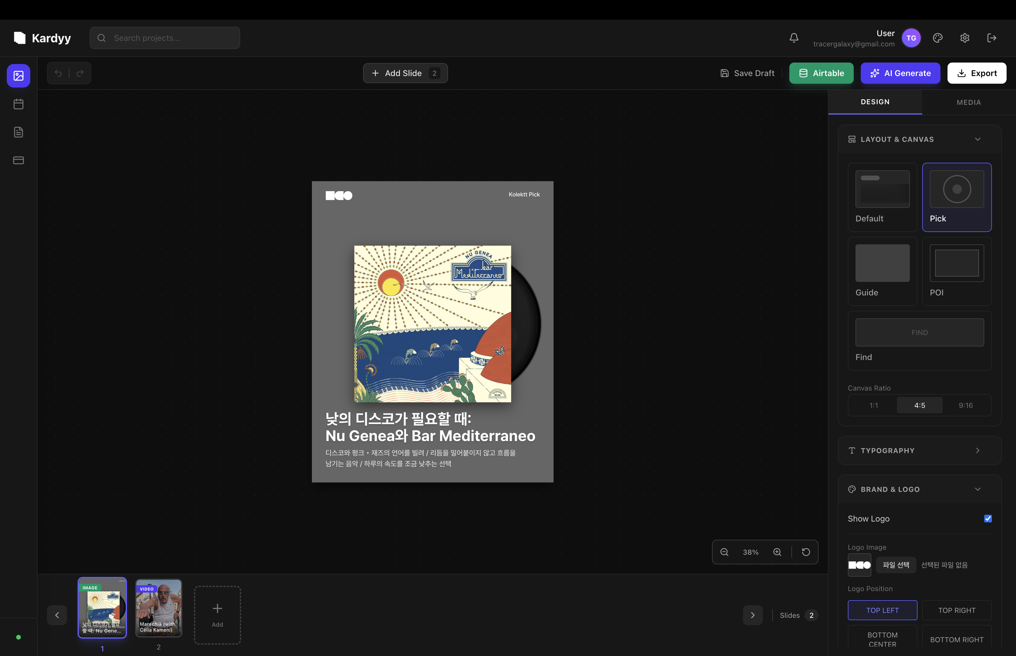 I turn each newsletter issue into visual card news for social media. The video overlay feature lets me create Reels from YouTube clips too.
